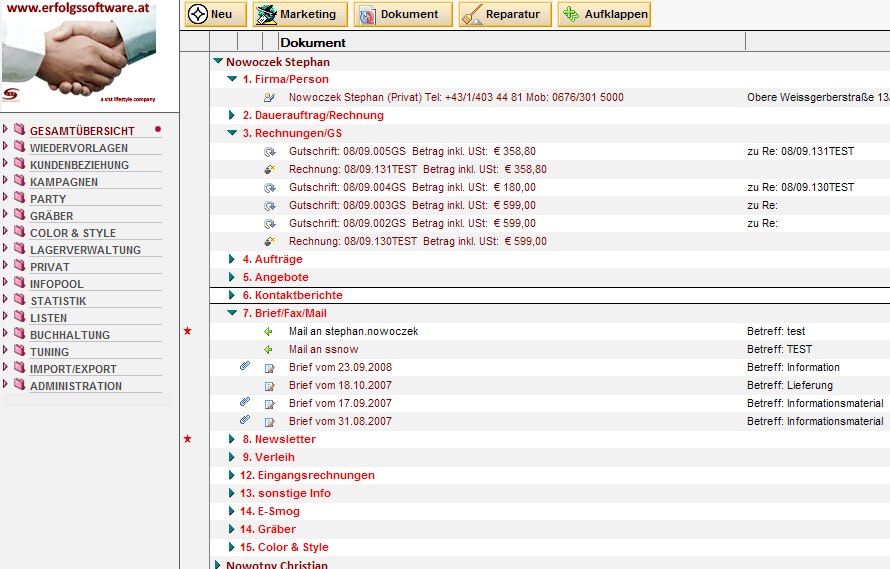 Alle Informationen sind in einer Datenbank und dort direkt bei Ihrem Kunden abgespeichert.